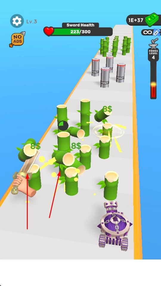 2、通过使用刀剑砍击竹子等物品,能获取金币奖励。在此过程中,要留意刀剑的耐久度,做到合理操作,防止过度损耗。