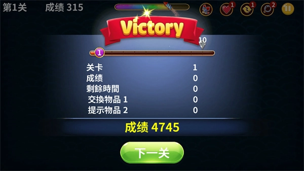 5、成功通关即可获得奖励,点击进入下一关,积分将持续保留,直至玩家闯关失败。