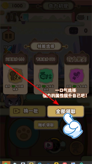 2、明晰的闯关引导:给出确切的闯关攻略,从点击“初入奇猫国”启动剧情,到跳过剧情、挑选技能、领取奖励,每一步操作皆有清晰的路径,能让人迅速熟悉流程。