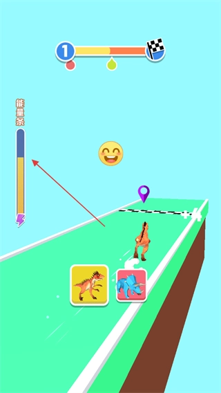 2. 在奔跑的过程里,通过收集道具来提升能量,进而让左侧的能量条不断增长。能量条增长后,能助力你实现更好的冲刺。当接近终点的时候,要保持良好的节奏。