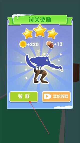 4、顺利通过关卡后,点击“领取”按钮,就能获取金币、道具等作为过关奖励。此外,你还能选择双倍领取,通过观看视频来获得更为丰厚的奖励。