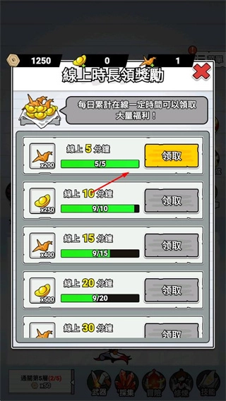 3、获取线上时长所对应的奖励,积攒资源以用于武器强化与角色发展。