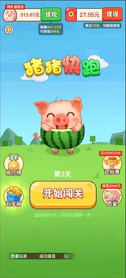 猪猪快跑红包版()是一款内容丰富多样的休闲跑酷闯关类游戏。它拥有精致的游戏画面,能给玩家带来出色的视觉体验。游戏中设有不同的关卡,等待玩家前去挑战,玩家可借此体验更为丰富的游戏内容。此外,关卡挑战形式多样,极大地增添了游戏的趣味性。不仅如此,该游戏还融入了排行榜功能,让玩家的游戏体验得到显著提升。想要体验的玩家,赶快行动起来吧!