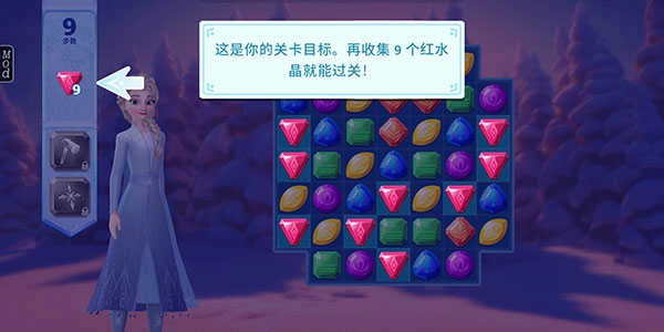 2、屏幕左侧会显示关卡目标,例如收集特定数量的红色水晶,达成目标就能顺利过关。