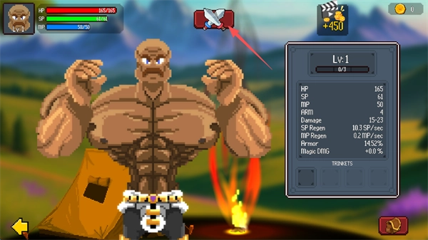 1. 轻点屏幕上方的“双剑”图标,即可开启游戏。