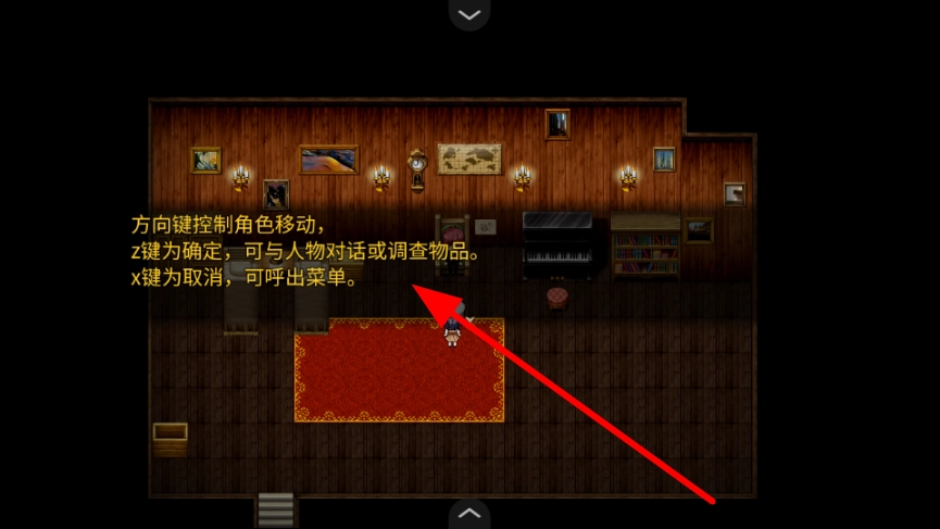 3、游戏内设有基本操作指引:通过方向键来控制角色移动;按下Z键进行确定操作,此键还可用于与人物对话或者调查物品;而X键则用于取消操作,同时按下X键还能够呼出菜单。
