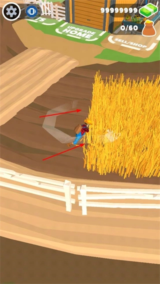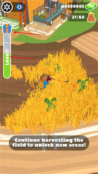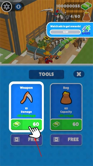 2. 消耗金币对镰刀与背包进行升级,以提升农场劳作的效率。