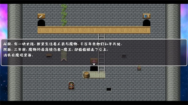1、首先在开心电玩下载并安装好《魔塔与6勇者》,打开游戏后会先播放一段动画,这段动画讲述的是这座魔塔背后的故事,建议观看,挺有趣的。