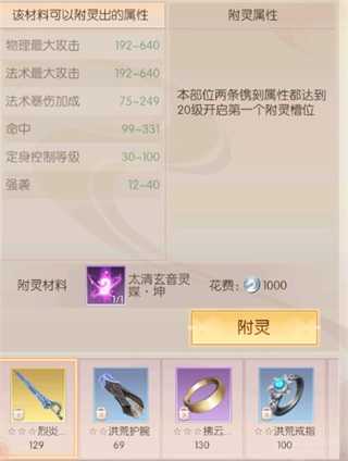 附灵指的是在装备位上增添属性,各个装备位进行附灵时,所消耗的附灵材料有所差异。附灵槽位的开启条件与装备位的镌刻等级相关,当本部位的镌刻等级全部达到20级时,会开启本部位的第一个附灵槽位,此后每提升十级,就能增加一个槽位。每次附灵所获得的属性以及属性值均为随机,而且每条附灵属性相互独立,玩家可自主挑选附灵的槽位。