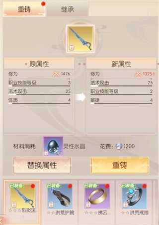 与精炼类似,重铸同样具备继承系统。玩家能够借助重铸继承,把来源装备里的附加属性传承到目标装备之上,而来源装备的附加属性会随之消失。重铸继承依据装备的等级与品质,消耗数量不等的继承石,并且重铸的属性仅能往品质更优、等级更高的装备上进行继承。