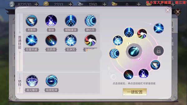游戏里的技能轮盘设有两页,建议大家将其中一页设置为输出技能,另一页设置为辅助技能,具体可参考下图。