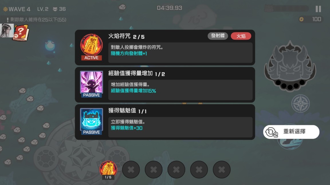 4、每一次升级,都可获取随机三选一的技能。合理对技能进行搭配,有助于你战胜更多的敌人。