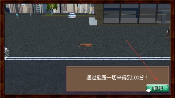 1. 点击“继续”按钮,即可进入城市场景。进入场景后,屏幕左下角会出现方向操控键,右下角则是跳跃按钮。首先,利用方向键操控山羊在街道上移动,借此熟悉场景布局,接着尝试点击跳跃按钮,让山羊越过路边的障碍物。