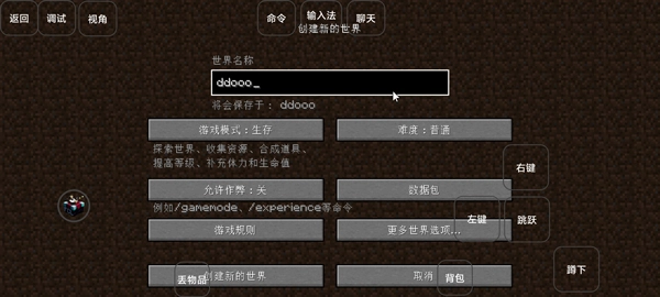 创建世界时要将允许作弊改为开,再点击创建世界;