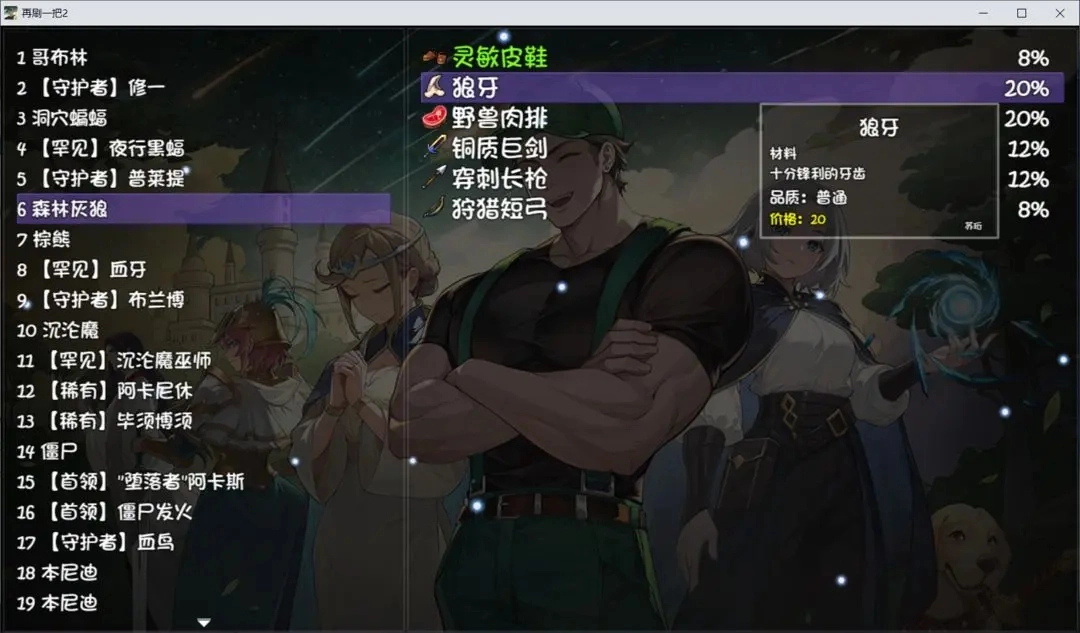 增加了20个BOSS,大概50-60件新装备