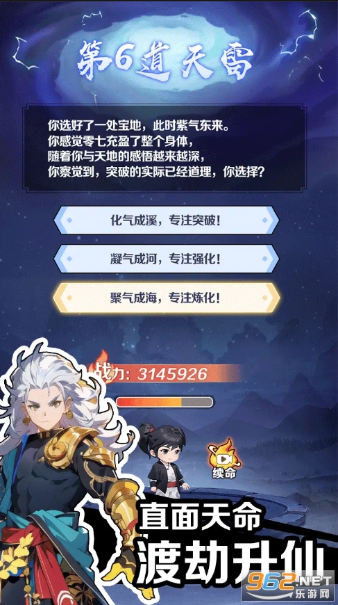 看广告时要是联想到大乘境界,就算不看广告,也得耗费好几天时间——全靠秘境持续获取商城丹药,把各项属性刷到极致。这还没算上剧情内容和可能出现的卡退情况,我现在才到练虚巅峰阶段。从化市神突破到练虚,得扛住110万力道的雷劫,不然就会失败,而且是退出游戏后重新进入才会计算结果。(不同选项可能会导致结果有差异)另外,还能摸索出天道筑基的方法:退出游戏后选择第二个地区号,在雷劈过程中再次退出,就能看到最终结果了。