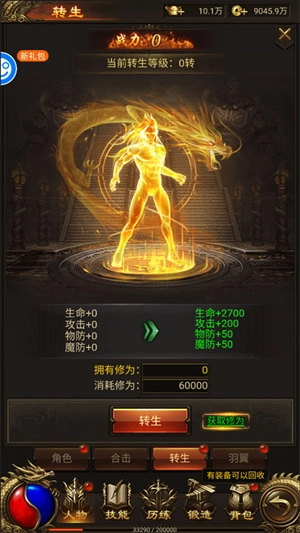 宝物系统:当人物等级提升至45级时解锁,该系统涵盖龙魂与魂骨两种玩法。