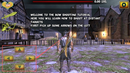 练习瞄准:握住弓箭后,通过操作屏幕上的瞄准按钮来练习射击目标。