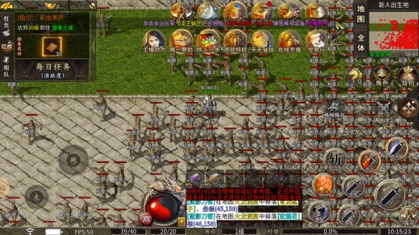 伤害提升后金币获取速度会加快,到了后期要是出现人多BOSS不够打的情况,就能去土城找卷轴商人用金币抽取卷轴。
