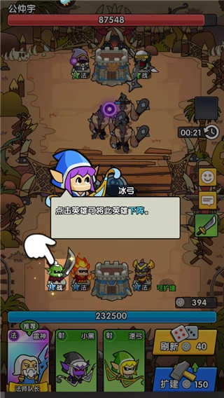 玩家点击扩建刷新就能购买英雄,组建专属的战斗组合,战场上的英雄彼此间存在搭配关系。