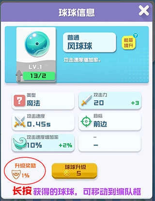 球球升级后,你将得到永久的暴击属性加成,这个加成对所有球球都生效哦!所以一定要记得升级呀!
