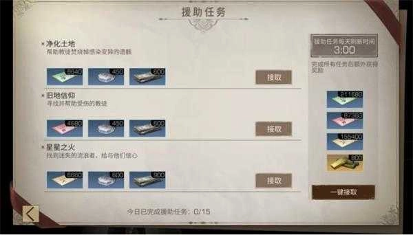 明日大陆事务繁多,各地散布着需要幸存者协助的NPC。幸存者可依据地图标记找到援助任务发起人并接取任务,完成后能获得丰厚的熟练度奖励。此外,幸存者还能通过“日程——日常事务——地图援助任务”路径,查看可援助任务的进度情况(庄园等级越高,可接取的援助任务数量也会相应增加)。