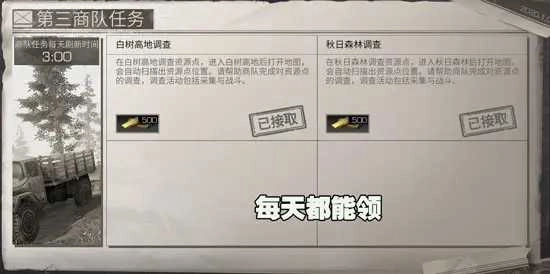 完成瑞秋的新手任务后,每天都能去101营地大厅接第三商队的任务来获取金条。这些任务大多比较简单,主要内容是找箱子、挖矿和杀怪,其中杀怪相对难一点。新手要记得边走边打,及时躲避伤害,别和怪物硬拼,不然先倒下的肯定是你。