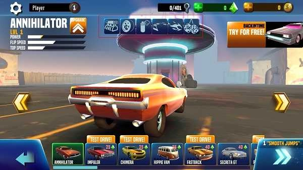 可以在车辆腾空时秀出酷炫的特技,记得收集路上的金币,这些金币后续会派上大用场