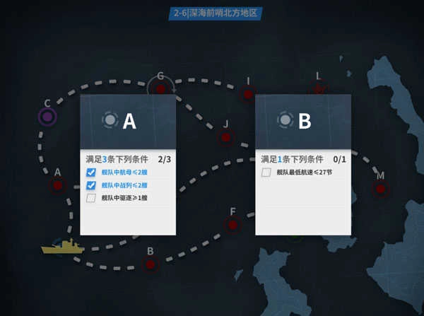 ①首先对每个条件逐一进行判断,看看你的舰队符合了哪些条件。