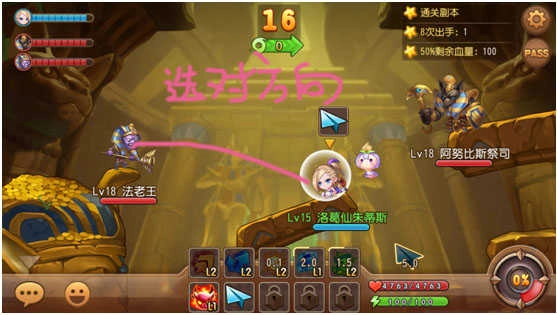 在阿努比斯副本里存在四种小怪,分别是炸弹木乃伊、冰弹木乃伊、红血木乃伊以及毒气木乃伊。这当中威胁性最大的当属毒气木乃伊,所以首要任务是将其击杀,接下来则是处理冰弹木乃伊。尽管炸弹木乃伊的攻击也能达到9000以上,但由于时间有限我们无法顾及,因此需要大家轮流开启护盾,让骰子来承受炸弹木乃伊的攻击。