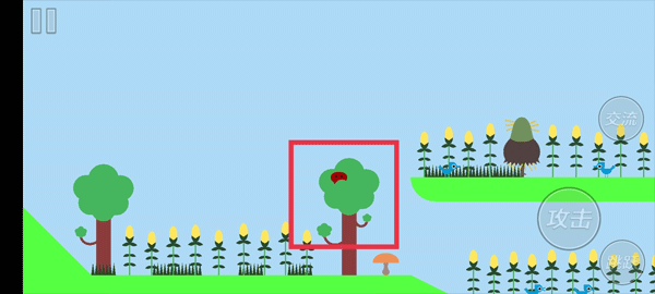 要是你想避开游戏角色,防止被他们发现,不妨点击“跳跃”按钮藏到树上去。