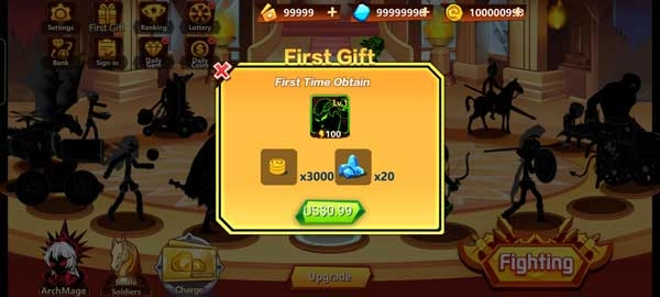 3、在火柴人冲突这款游戏里,你只需动动指尖就能获取更多游戏奖励,解锁更多游戏道具。
