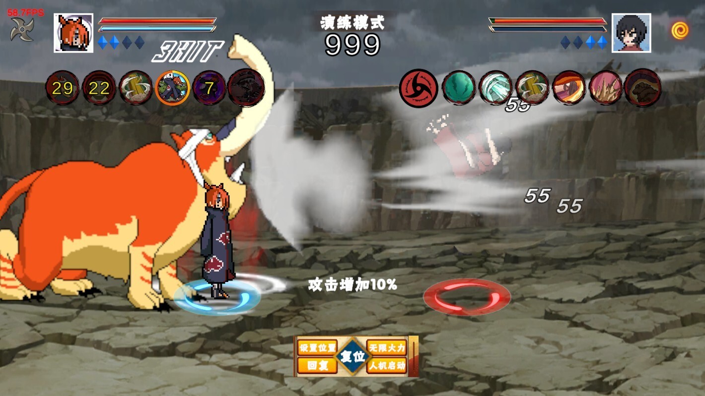 共有三次攻击,结印生成的分身会向前突进发起攻击,操控方向键即可调整其y轴位置。