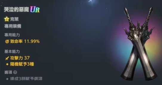 四星战神克莱:具备大范围物理减防效果,满破状态下两段攻击合计可造成200%物理伤害,刷初始时可以优先考虑UR克莱的专属装备。