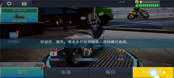 1、打开真实公路摩托锦标赛游戏,点击开始游戏按钮进入游戏模式选择界面;