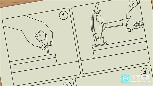 2、接下来是锤子时间,这是在试玩中最吃力的小游戏。随着一张平板家具说明书出现,随着节拍敲击钉子,回应着它们放置的节奏。更复杂的是,游戏偶尔会用一只帮忙的猫来掩盖钉子放置或敲击的部分,所以得随机应变,尝试了几次后,勉强拿到了“酷”的排名,但错过了很多钉子。