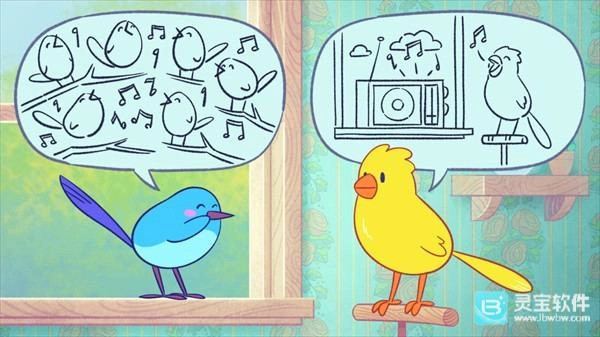 3、最后是一个关于宠物金丝雀与户外鸟类对话的小游戏。这里,在最后一拍发推,另一只鸟发推其余。有时候,当对方一次发出三次推特后,需要暂停一下,才能自己发推。越是错过节奏,新朋友就越烦躁。教程和游戏开头会用字幕显示球弹跳,用来模拟节拍,但很快就被淘汰了。