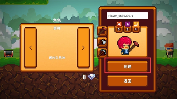 2、在角色选择界面选定角色后,点击右侧的【创建】按钮,即可完成角色创建并进入下一个游戏选择环节。
