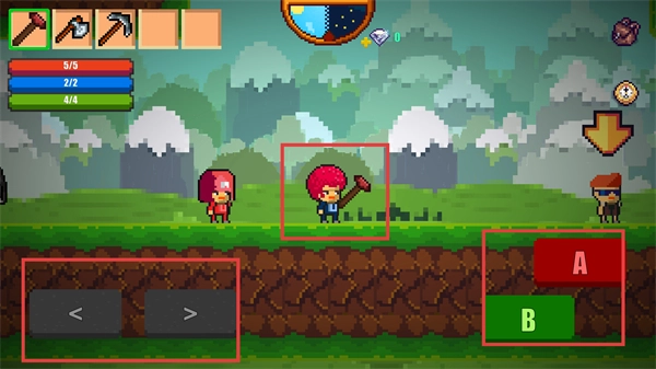 4、进入游戏主界面后,通过左侧的移动按钮操控角色移动,点击右侧的【A】【B】键,即可完成采集、攻击等基础操作。