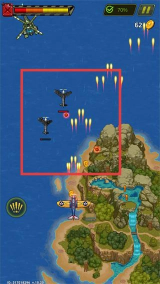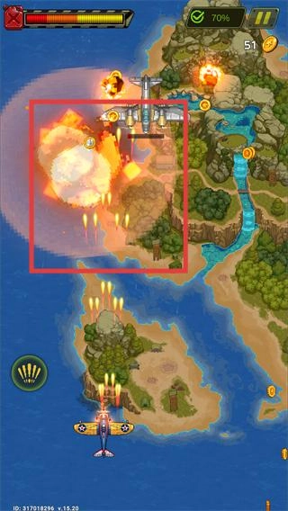 2、对准岛屿周边红框内的敌方单位进行射击,将其摧毁后不仅能获得金币,还能推动“击败70%敌人”的任务进程。
