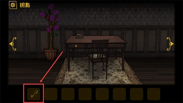 4、获取钥匙后,道具会存入界面底部的物品栏,后续可使用该钥匙解锁对应锁具(如书桌抽屉),推进解谜流程。