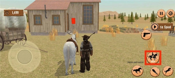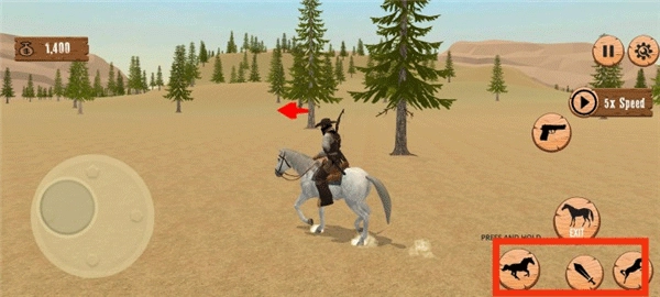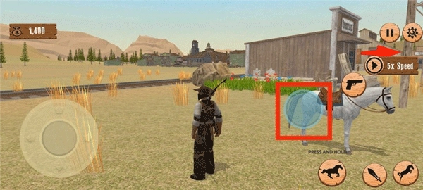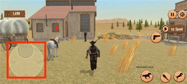 3、可以通过滑动屏幕左侧的方向盘,来操控牛仔角色的移动方向。