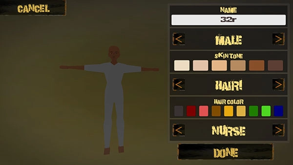 2、角色创建可自定义性别、肤色等外观,调整好各项设置后点DONE,完成角色形象的配置。