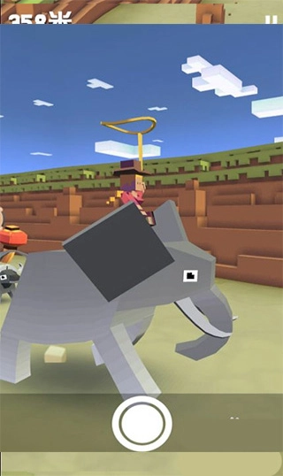 游戏开始的画面里,角色会骑着小野牛,手持套索在地面奔跑;按住画面不松手,等和前方动物距离较近时,向前滑动一下,就能瞬间跳过去。