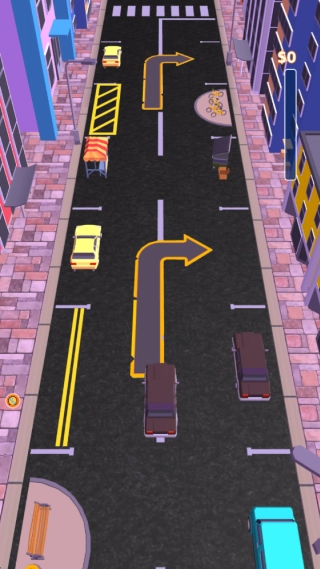 操控的核心在于时机把握:车辆会自动保持匀速行驶,玩家需要留意车位的位置,在合适的时机点击屏幕来让车辆转向,从而精准地把车开进目标车位。