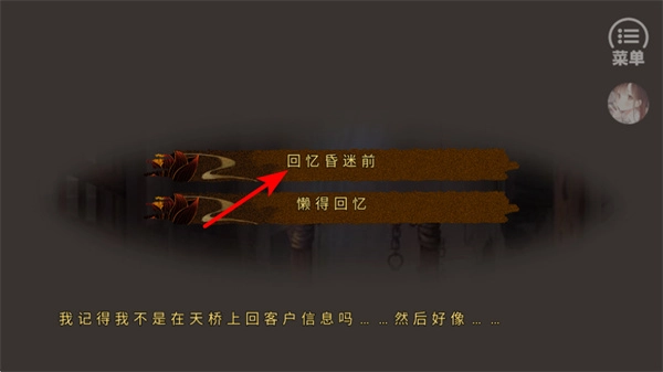 在剧情选择界面,点击“回忆昏迷前”选项,就能回顾剧情背景,知晓角色的身世与处境,为后续剧情的推进做好铺垫。
