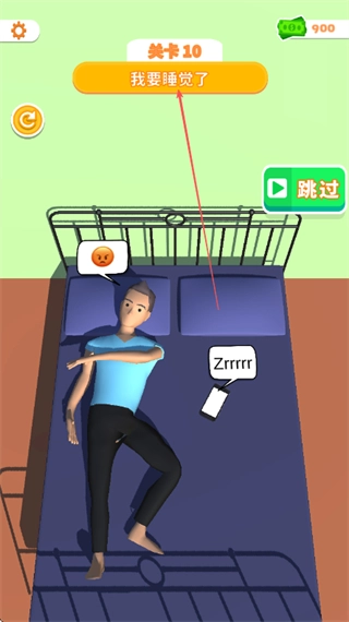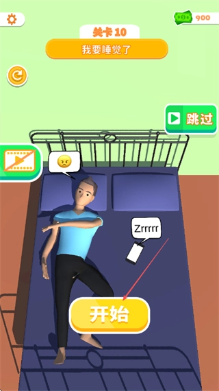 点击开始按钮,进入关卡10我要睡觉了的挑战。