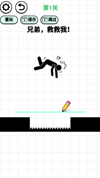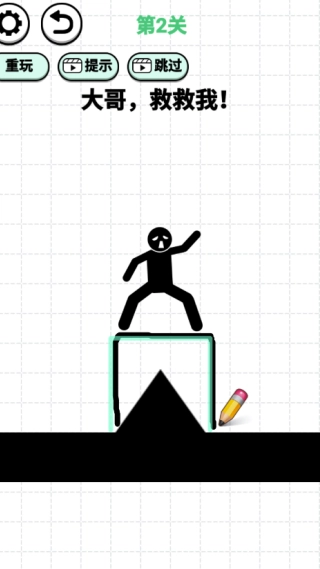 第二关的火柴人正处于危险边缘向您求救,您需要仔细观察地面上的标记,用流畅的曲线画出能避开尖刺的逃生路线,这就像用画笔编织出一条生命线一样。