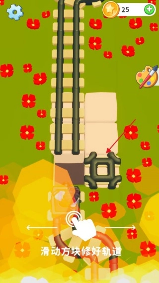把互动方块移到空位上,完成多方位的铁轨衔接任务,最终顺利通过游戏关卡。