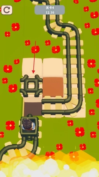 通过滑动操作连接断裂的火车轨道,在有限的格子空间内进行移动调整,最终让铁轨完整连通,从而完成关卡挑战任务。
